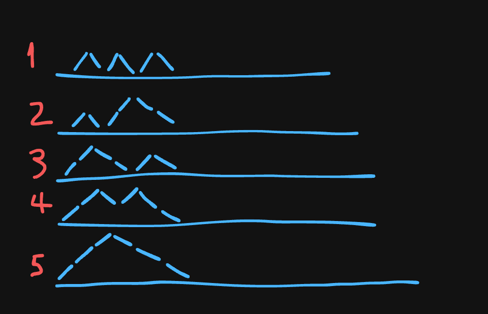 Here's the particular case for n=3n=3 in which we have C3=5C_3=5: